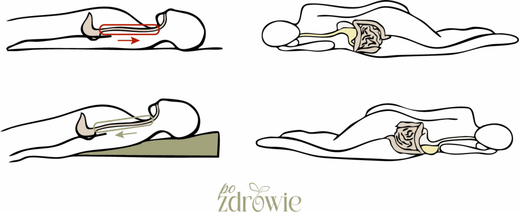 6. Śpij na lewym boku – ta pozycja wspiera prawidłowe przemieszczanie się treści pokarmowej z żołądka do dwunastnicy oraz poprawia drenaż żołądka